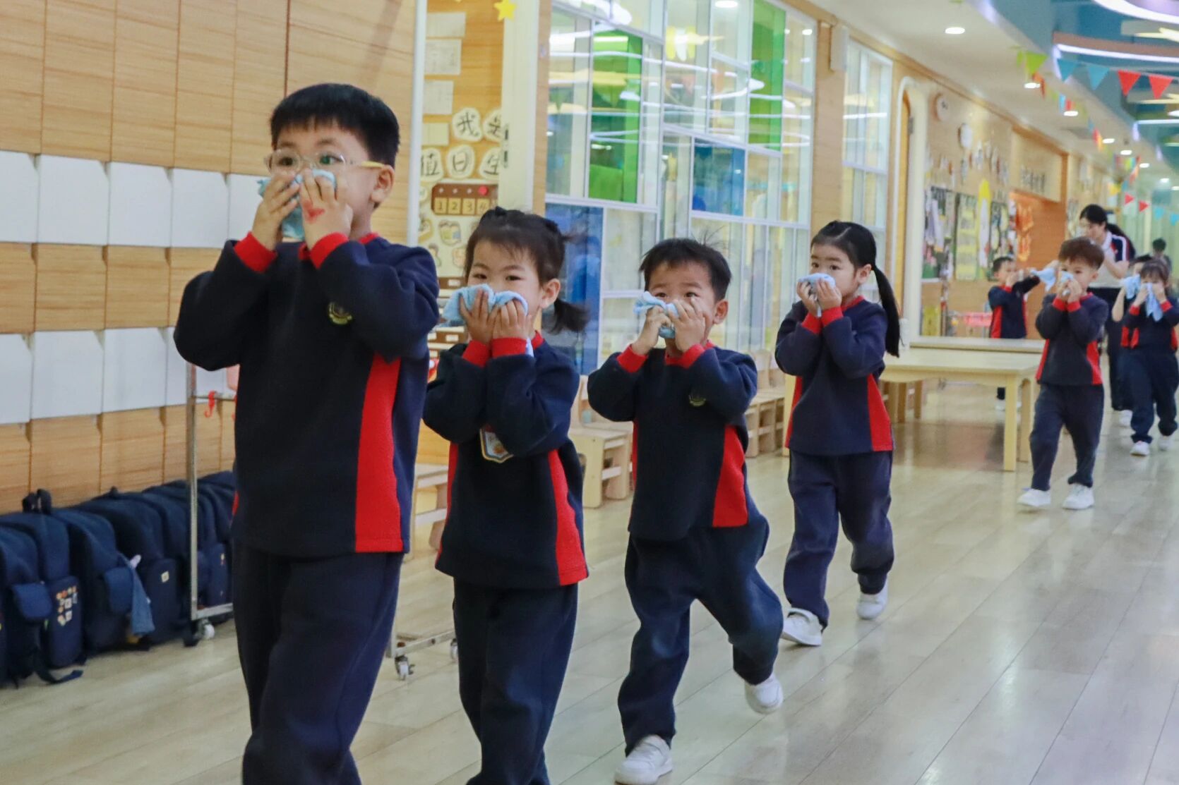 临危不乱: 听到警报声,各班教师迅速反应,立即组织孩子们按照预定的疏散路线撤离。