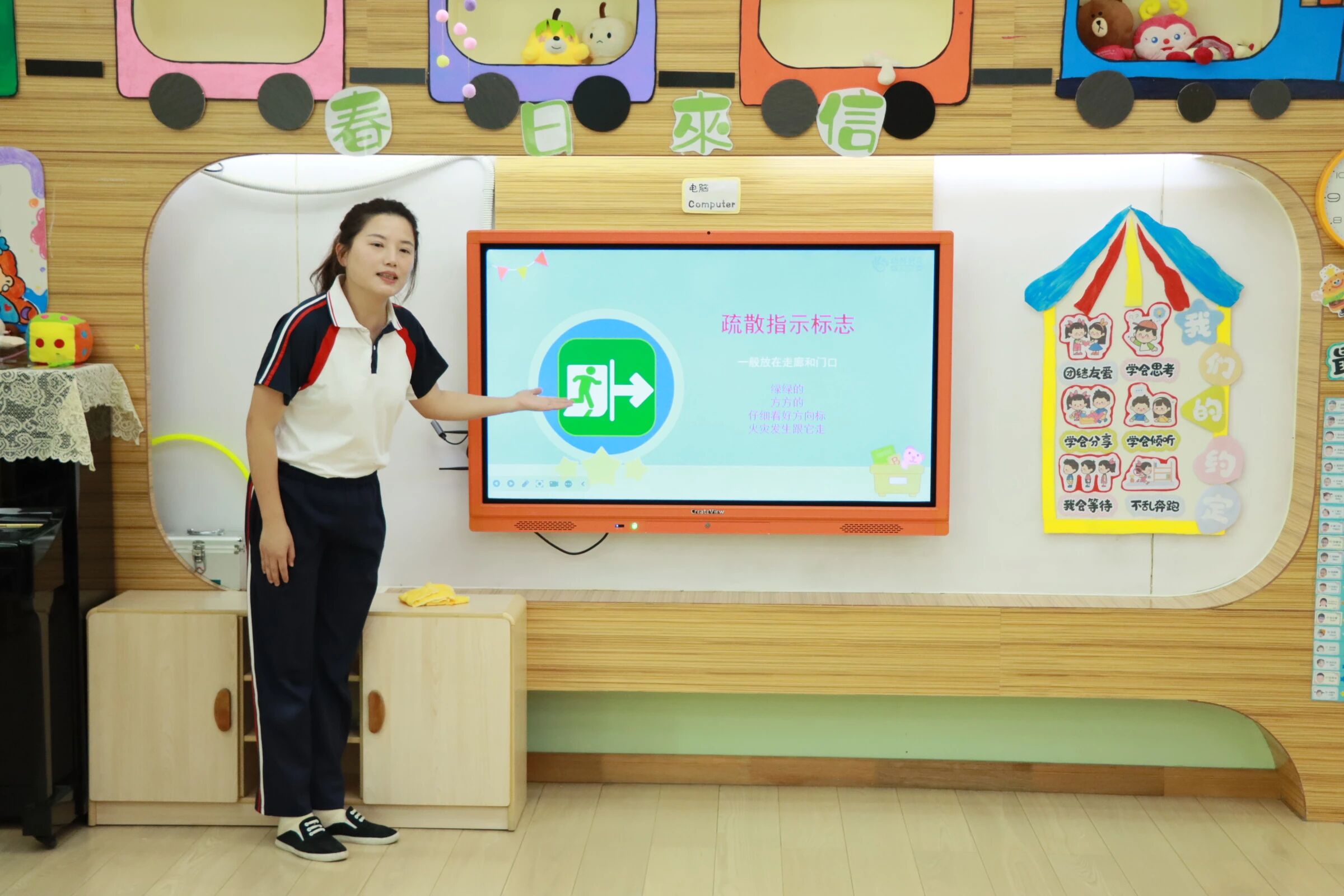 “什么是火灾?遇到火灾怎么办?”老师化身为“安全讲师”,用生动有趣的PPT、动画视频和互动问答,为孩子们开展了消防知识小课堂