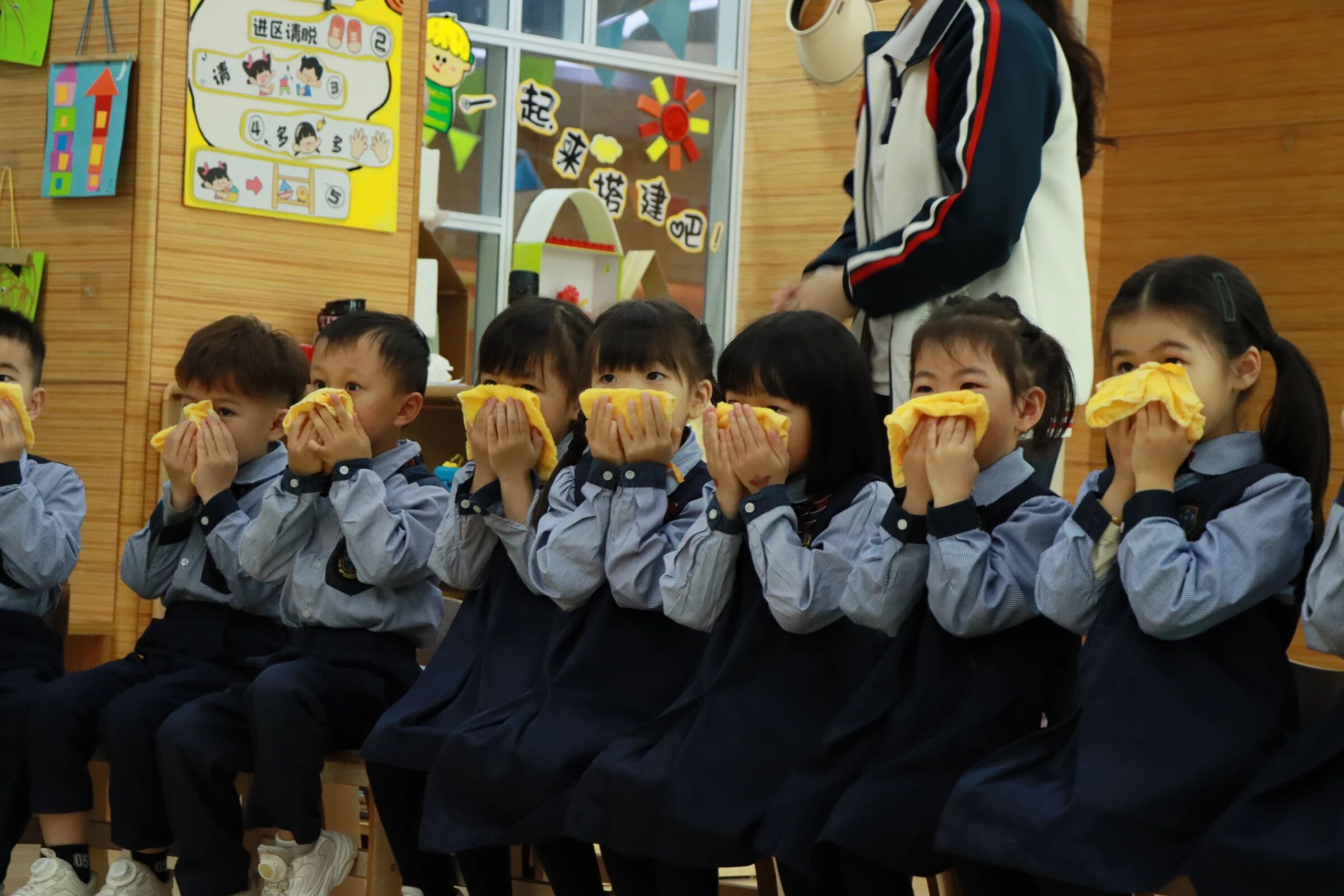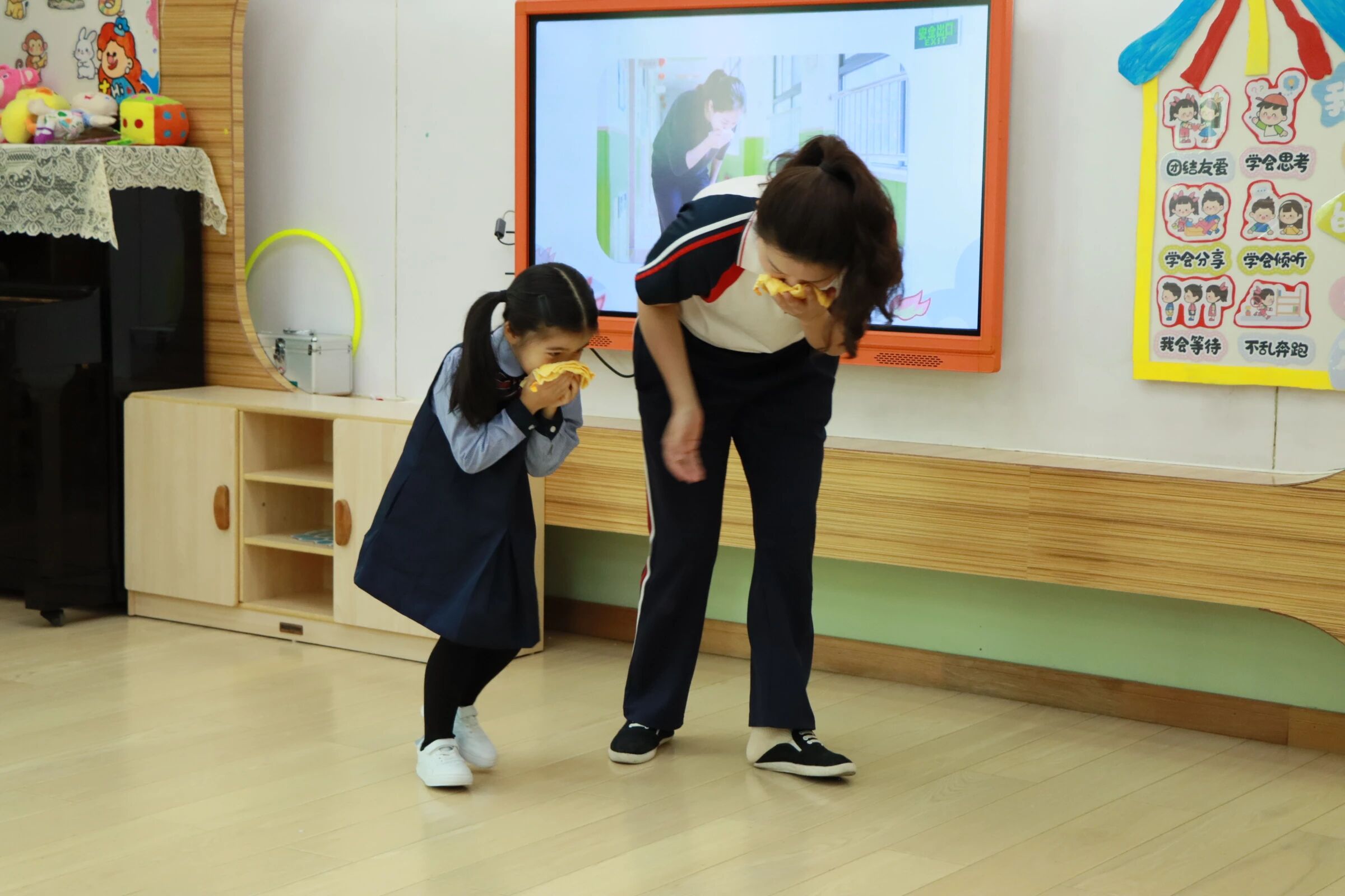 老师们通过儿歌和示范,
