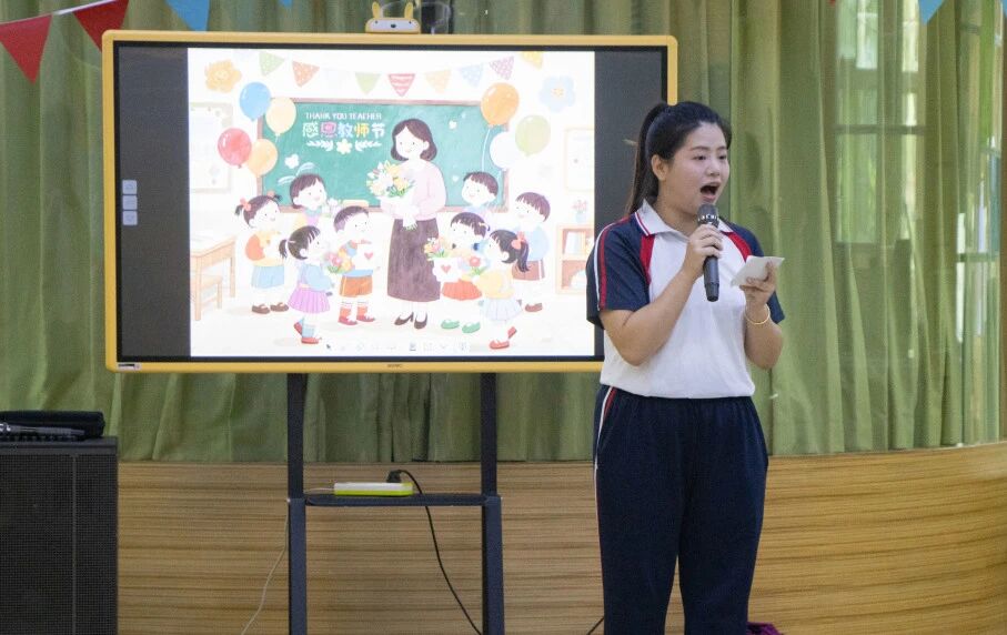 孩子们齐声合唱《感谢我的老师》,用清澈的歌声传递对老师的爱。