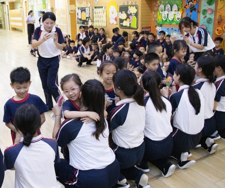 孩子们走向自己最亲爱的老师,送上亲手制作的礼物和一个温暖的拥抱。